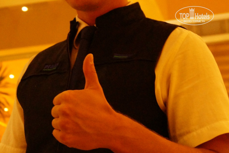 С утра в ресторане и в баре днём работал очень хороший официант, он убирал стаканы ( прикреплено его фото). Он всегда улыбался, веселил детей. Махал ручкой, когда купалась в море) Побольше бы таких. Хотя лично для меня там все улыбались.
