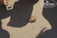 Море грязное, ног вообще не видно, постоянно были волны на море, особенно вечером. В море постоянно плавали водоросли, местами попадались какие-то палки. Во время отдыха, про то, что кусали черепахи не слышала, но в последний день видели 2 маленьких черепашат. Муж видел огромную черепаху в речке, которая впадает в море.