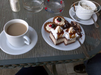 Разместили нас где-то через час сразу как приехали, приехали мы около часу дня (наш номер как раз убирали). Персонал был приятный, все говорили на английском либо на греческом.Нам сразу одели браслеты и предложили пойти перекусить в баре у бассейна. Там были пирожные и кофе =)