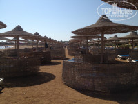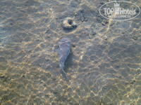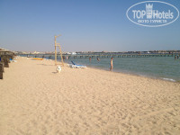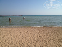 Пляж большой, песок средней фракции – босиком не комфортно. Шезлонги, навесы, полотенца…всего в достатке и всегда свободные места (очень много народу остаются на бассейнах). Есть два небольших бара, где можно попить и выпить, а также пляжный ресторанчик, где во время обеда правит холестериновый рай – фри, гамбургеры, хот-доги, питы, пиццы. Но, черт побери! Все очень вкусно)))