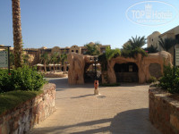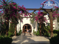 Территория большая, а совмещенность двух отелей делает ее просто огромной. Корпуса выполнены в виде блоков на 3 этажа песочного цвета, Много различной зелени – кустарники, цветы, пальмы. Все освещается ночью и пальмы, выглядят как безмолвные гиганты. Вся зелень подключена к поливу. Везде стоят указатели, заблудиться сложно. Не забывают и о чистоте – везде причудливые урны.