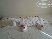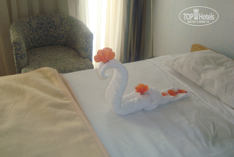Доброго всем дня! Отдыхали с 20 по 29 августа. Начну с расселения: Приехали по местному времени в 8.30, сразу пошли на завтрак. На ресепшне сказали, что заселят ровно в 2 ч., так и получилось, хотя после нас приехала группа немцев, их расселили сразу. Очень тяжело было дожидаться, но зато номер дали такой как просили (через сайт), учли все пожелания. Номер хороший, всё работало. Убирали каждый день, чаевые по доллару оставляли не всегда, но когда оставляли, всегда делали разные фигуры из полотенец и даже из одеял.