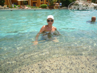 Ездили с 27.08 по 03.09 с другом оператором Join-Up! Приехали в отель в 10 утра, чек-ин был на 14-00, поэтому надели браслеты, позавтракали и пошли на море. Был отлив, море было далеко, потому мы пошли по понтону в самый его конец к коралловым рифам. Это, конечно же, фишка отеля. В Египте я не первый раз, и ни в одном отеле коралловых рифов и такого множества разнообразных рыб мы бесплатно не видели. Только когда выезжали на морские экскурсии с остановкой на рифах. Купили маску, трубку, ласты, кораллки у Миши (магазин № 29 между отелями Гарден и Бич), чехол для фотоаппарата для подводной съёмки - все сторговали за полцены + Миша подарил еще пару магнитиков в подарок )) вид, конечно, под водой замечательный!!! Заселились в 14-00, как и было обещано. Номер был отличный, все исправно - кондер, сейф, телевизор, холодильник. Попросила убрать все кроме бесплатной воды из мини-бара, но так и не убрали, из-за чего по отъезду поскандалили на ресепшене, т.к. нам попытались впарить якобы выпитый апельсиновый сок за 2 доллара, который мы в помине не брали. Но это стандартная процедура, разобрались )))