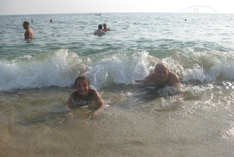 Отдыхали с 26.08 по 4.09. Отдых понравился.Погода очень жарко,море супер,не вылезали из моря по 2 часа.море от отеля близко ,рядом красивая набережная ,можно гулять.Территория отеля маленькая,2 небольших бассейна,один с горкой,номера средние,для двоих нормально, в четвером тесно,нужно брать фэмыли рум.