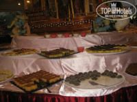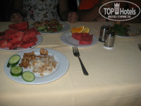 Питание хорошее,много овощей ,арбузы ,дыни ,апельсины каждый день,утром яйца,много сыров,вкусные пончики,много джемов.мясо не было,кура в разных вариантах,пироженых много ,но все на один вкус,пропитаны сиропом.С 16.00 до 17.00 у бассейна были печенюшки.Бар на пляже платный ,лежаки платно.