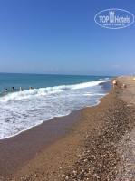 Пляж,ехать до него мин 5-7 это не напрягало,больше не понравилось то что что тенты от солнца натянуты действительно далеко от моря,возле воды нет зонтов от солнца,а по раскаленному песку с маленьким ребенком не набегаешься.