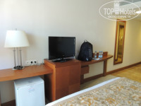 Отель. Он конечно старый. Но его периодически ремонтируют. Как я поняла, отремонтированы не все номера но нам достались новые, с ремонтом. Жили в двух номерах, так как по приезду номера с видом на море оказались все заняты, нам пообещали завтра освободить оплаченный нами номер и предложили переночевать в бунгало. В принципе бунгало с новым ремонтом тоже неплохо, но там маленькая площадь и очень далеко идти до основного корпуса, и вай фай вообще не ловит. В момент заселения не было полотенец, после двух напоминаний через часа полтора полотенца наконец принесли. На утро нас перевезли в основной корпус. Номер на 2 этаже с видом на море и дельфинарий. По площади значительно больше бунгало. Ремонт там был произведен также недавно, телевизор плазма и фен тоже обновили. Я начиталась про древние фены в номерах, пришлось свой везти. Потом оказалось что и местный нормальный.