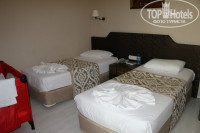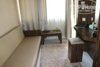 Проживали мы в самом обычном Club Standart Room, расположенном на втором этаже около территории selekt villa. Номер небольшой, чистый, с приятным ремонтом. По запросу нам в течение 2 часов принесли детскую кроватку-манеж, в которой разместился мой 2х-летний ребенок. При этом предлагали застелить для него диванчик в номере, но нам кроватка удобнее показалась. Кондиционер у нас работал исправно. При этом мы не выставляли на нем низких температур, дабы не простудиться, а решетки на самом кондиционере муж физически направил на потолок, чтобы не дуло на кровати. В номере небольшой, но удобный балкон. Относительно ванной - да, поддона в душевой, конечно, не хватало. Вода действительно вытекала на пол, если сильно включать душ и направлять его вперед. Мы вышли из положения с помощью ножного полотенца, которое стелили на пол перед кабинкой с целью сбора воды, а одно из полотенец для головы использовали как ножное.