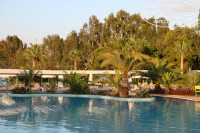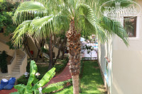 Огромная, ухоженная территория. Кругом пальмы, хвойные деревья, деревья с плодами лимона, лайма, оливками, бананами. Основные дорожки до бассейнов и центральные аллеи в тени виноградной лозы.