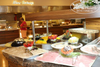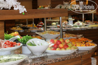 Кормили нас просто отлично. Еда очень разнообразная, вкусная. Найдется на любой вкус. Всегда много фруктов, овощей, кондитерских изделий. Пироженных было столько, что мы даже все попробовать не успели. Ребенку всегда можно найти, что поесть: в меню постоянно присутствовали диетические блюда, отварная птица, всевозможные овощные пюре и просто отварные овощи. Для детей постарше и некоторых взрослых-любителей всегда присуствовал фаст-фуд: очень вкусная картошка фри, куриные крылья и голени, а также гамбургеры и сосиски. Иногда мы обедали не в основном ресторане, а в ресторане у аквапарка или у моря. Там несколько меньший ассортимент, но зато меньше народа и суеты. А еда вкусная была везде. Вообще поесть можно было в любое время, даже во время перерыва в основном ресторане постоянно можно было перекусить в барах или кафе у бассейнов. Один раз мы даже попали на ночной суп и бутерброды. В общем, голодным или недовольным едой там точно никто не останется. Мясо, овощи, птица, рыба. В любом виде. На завтрак всегда 2 вида каши и одних только блюд из яиц не меньше 5 видов. Много разнообразной выпечки, круасаны, варенье, мед в сотах. Всего просто не перечесть. Напитков тоже много разных. Как алкогольных, так и безалкогольных. Нормальное пиво, три вида вина, разнообразные коктейли. Бармены намешают любой по заказу. Чай\кофе - в любое время суток. Мороженое давали 1 раз в день с 16.00 до 18.00. Всегда двух видов. Очень вкусное! Все дети в восторге. А около олимпийского бассейна готовят наивкуснейшие пончики. А в гала-ночь огромный торт из мороженого.