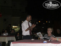 Персонал ресторана довольно вежливый для Турции. Но отдельно хочу сказать об одном работнике ресторана, о Тунжае. Он на первый взгляд очень обходителен, доброжелателен, шутит с туристами, он хорошо говорит по-русски. Особенно он внимателен к девушкам, можно сказать что даже слишком, очень убедительно говорит им что они тут самые красивые, никого не стесняясь назначает им свидания, хотя вокруг отдыхающие почти все русские. А если девушка согласится сходить с ним в кафе вечером, а от дальнейших отношений откажется, то обязательно отомстит, может не пустить в ресторан, придраться к ее внешнему виду, например. Но даже если девушка повелась на все его красивые слова, а говорит он их с очень честными глазами между прочим, то это не помешает ему говорить абсолютно те же красивые слова другой туристке, зная что та его «возлюбленная» сидит через столик и все слышит. В общем, тот еще ловелас, хотя с первого взгляда не производит такого впечатления. А так персонал отеля очень хороший, за исключением выше указанного.