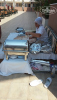 Еда однообразная, из гарниров каждый день рис и макароны, пюре с привкусом странным и то 1 раз в 4-5 дней давали. Салаты мне ни один пришелся по вкусу, на вид они тоже не очень. На обед были бульоны, но нам они не нравились. Каша была раза 3-4 за всё время (11 дней), и только рисовая и очень сладкая. По утрам с 8-00 делали омлет, но он был очень жирный и безвкусный (масла на сковороду наливали столько же сколько и яичной массы). Под конец нашего отдыха эту еду уже не могла есть, только арбузы и спасали. Из фруктов давали только арбузы, иногда кислые апельсины, раза 2 всего давали яблоки сладкие. После обеда возле бассейна пекли лепешки, единственно что очень понравилось из еды.