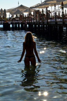 Теплое, чистое. Пляж чистый. Большой пирс с мягкими белоснежными лежаками, на пирсе бар.