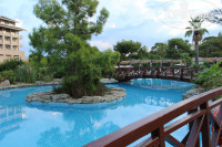 Питание. Мы посещали только главный ресторан. Еда нормального качества. Завтрак традиционный для всех отелей: омлеты, разные виды яичниц, оладьи, блинчики, сосиски. Свежевыжатый апельсиновый сок. Обед и ужин мясо (индейка, телятина, курица, ОЧЕНЬ РЕДКО БЫЛА БАРАНИНА!!!!), рыба. Блюда на гриле. Гарниры (макароны, рис, картофель). Фрукты: арбузы, дыни, нектарины, виноград двух сортов, яблоки, груши, свежий инжир (крайне редко!!!). Пирожные, торты, выпечка, различные булочки, пончики, халва, лукум. Чтобы не уехать "жиртрестом" (всё не перепробуешь!) я брала халву (на завтрак) и свою любимую баклаву (пахлаву). Порадовало питание для детей: во-первых, деткам отведена отдельная комната с интересной яркой мебелью. Йогурт, кефир, пюрешки. В детской комнате стоит блендер, мамочки и папочки могли делать пюрешки собственноручно.