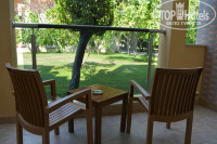 Сам номер расположен на первом этаже, он двухкомнатный, но комнаты небольшие. Свеженький ремонт, мебель слегка пошарпанная, но в целом - все довольно уютно и чисто. Вид с балкона на сад с лимонами. Уборка номера ежедневно, кроме среды, полотенца меняют по вашему желанию, белье нам меняли раз в три дня примерно. Полотенца для пляжа можно получит по карточкам в СПА-центре, там, кстати, есть крытый бассейн, тренажерный зал, финская сауна и Хамам (где так нравилось плескаться водой сыночку) .
