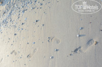 О пляже скажу отдельно – он здесь не оборудован всеми благами цивилизации, а натуральный. Это место облюбовали так любимые турками черепашки «карета-карета» для своего потомства. Поэтому шезлонгов там не много, до ближайшего бара метров 300 и прочих удобств нет. Самих черепах ни на пляже, ни в море мы конечно не видели, но может это и к лучшему… Зато насладились красивыми видами на окружающие отель горы и скалы, понаблюдали за бегающими по побережью крабами и пособирали красивую гальку, которую выбрасывают на песок волны. Сам песок на пляже темный, очень сильно нагревается днем, поэтому до воды лучше всегда ходить в шлепках. Вода теплая.