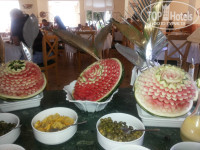 ПО ЕДЕ... Скажу честно и откровенно - голодными вы не останетесь - это точно. Ну только если вы дома едите икру красную, черную и баклажанную ложками - то вам точно не сюда))) Еда достаточно разнообразна. Индейка, говядина, курица, рыба, перепелки, креветки, мидии, супчики (было 2 вида), пицца, паста, лазанья, рис\плов, макароны, раличные овощи, баклажаны (в т.ч. и рулетики из баклажанов), салаты (около 8-10 видов), сыр, яичница и блинчики (на завтрак) и т.д. Каждый найдет себе яство по вкусу)))) Кондитер просто выше всяческих похвал... Такие шедевры, которые готовил он... - это просто шедеврально и умопомрачительно!!!))))) Ранее читала в отзывах про грязную посуду - бред... за все 13 дней не нашла ни одной... может просто плохо искала? а может просто не искала...)))) Скажу еще одну вещь по еде - с 14 до 16 часов в баре на пляже готовят вкусную пиццу, гамбургеры (менее вкусные), и булочки наподобие хот-догов, только с измельченной колбасой))))... Это для тех, кто проголодается между обедом и ужином, ну или по какой-то причине пропустит обед.