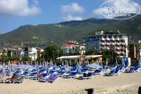 Немного о море и пляже: До пляжа 5 мин. ходьбы - это большой "+". Море чистое, красивое (особенно рядом с пещерой Дамлаташ). Очень теплое и соленое, насморк ушел моментально. На пляже, который считается при отеле, повсюду разбросаны бычки - это дело рук самих туристов. Такие вот хрюши отдыхают. Пляж - городской, поэтому будете загорать и купаться вместе с турками. Мне это не мешало. Шизлонги платные, мы даже не интересовались стоимостью, с собой были взяты полотенца.