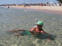 Ходили пешком в Хаммамет Медину. Там единственный магазин со спиртным (местным). Литр местного виски,рома или другого стоит примерно 20 Долларов. Пиво - 1 доллар. Идти 7 км. Тяжеловато. Обратно на такси за 10 минут за 6 динаров. Можно купить фрукты виноград, дыни, арбузы, гранаты и др.