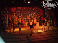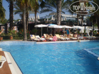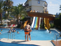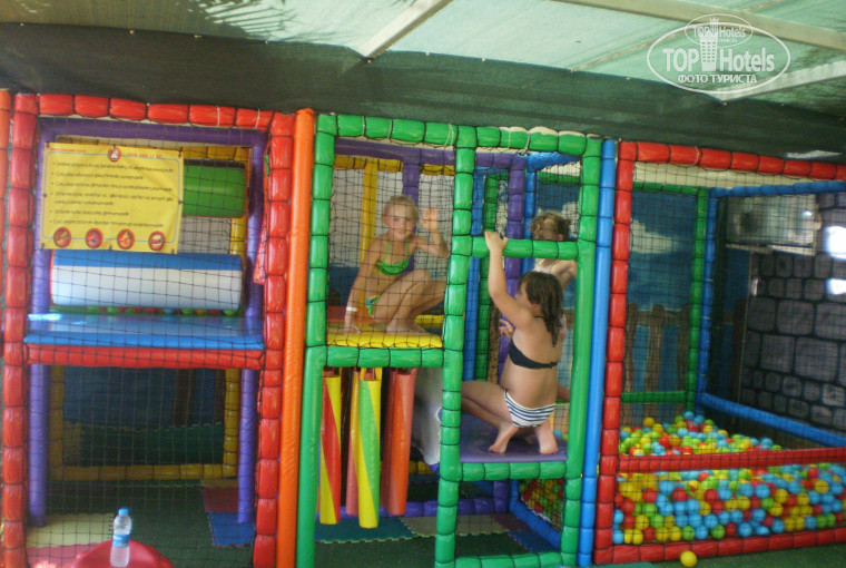 Территория отеля очень маленькая. Все занимают бассейны и бары. Погулять вам не удастся здесь. Вышел из корпуса и 50 метров море. У бассейнов лежаки лучше занимать с утра, иностранцы на них спят ночью))).Три горки со спасателем работают по расписанию. Детский клуб со своей игровой площадкой. С детьми хорошо занимаются, всякие игры, аттракционы, переодевание, вечерняя дискотека. Все веселились от души, и русские и бельгийцы))). Волейбол, танцы у бассейна взрослые тоже есть. Вечерние представление частенько пропускали, но они присутствуют.