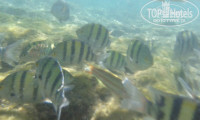 Также ходили поплавать и посмотреть рыбок на остров возле отеля Club Azur, но там очень неудобный вход (камни), поэтому лучше все таки идти в спец. обуви.