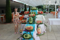 Особенно запомнился ресторан в котором мы завтракали, с утра очень мало народу тишина и покой, можно посидеть с бутербродом и омлетом подольше, на улице жарили яичницу и оладьи кто хотел брал, очередей не было нигде!!! Очень много мяса и салатов, правда салаты на любителя мы их редко брали, зато рыба, телятина и индейка была пальчики оближешь!!! Очень много сладкого в основном они желейные, но такие вкусные. Чтобы проблем не было с пищеварением, пили БИФИФОРМ, всем советую. Всегда были свежие фрукты, груши, арбузы мандарины, яблоки, персики. Все, что душе угодно. Знаменитые лепешки с любыми начинками , за них можно смело 10 баллов ставить.