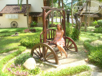 Территория очень ухоженная: пальмовая роща, кусты, цветы, качели, лавочки, все сделано со вкусом. Работников в саду было больше, чем всех отдыхающих. Периодически они скидывают кокосы, можно у них попросить, они вас угостят.