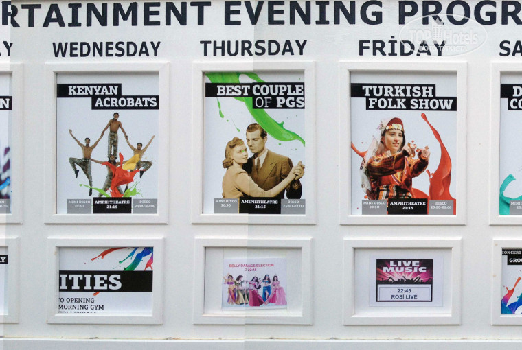 В пятницу на ужине пели турецкие песни, играли на барабанах и тд. Турецкая кухня.