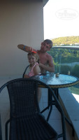 Номер дали просто обалденный 1803 (получается 8 этаж) или по ихнему 4 этаж (у них нумерация идет от -3 до 4). Балкон просто огромный, у нас спокойно там помещались столик с двумя стульями, кресло, потом мы выносили раскладную кровать на балкон и еще оставалось место. Для нас балкон имел очень большое значение, так как ехали с маленьким ребенком и поэтому после того как ее укладывали спать- сидели на балконе.