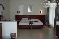 Войдя в номера поняли почему -2. Номера расположены якобы на первом этаже, однако выйдя на болкон видешь перед собой земляной вал высотой около 2 метров (смотри фото), где проходят дорожки для персонала, асфальтовые дорожки и прочие "прелести" туниского пейзажа. Сам номер был хороший по всем меркам - площадь около 35 кв. метров, большой туалетный блок, но прямо напротив ванной окно 50 на 50 см., в которое смотрят все рабочии отеля, проходя мимо.