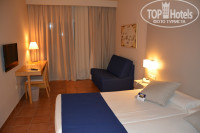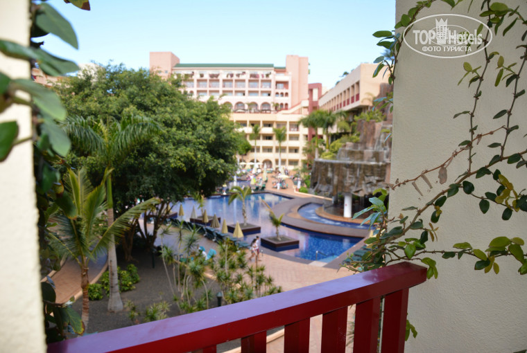 2. Отель. Отель большой, многоярусный, есть бассейны как в большом внутреннем дворе, так и на ярусах. Не найти лежак или место у бассейна сложно, хотя, конечно, лучшие лежаки занимаются ещё до завтрака не взирая ни на какие правила. Русскоговорящих туристов в отеле много (не менее 50%). Но есть особенность: мы отдыхали в апреле, и в отеле было холодно! Архитектура отеля такова, что некоторые коридоры являются открытыми, переходы к номерам почти по улице, а почти всё кругом в плитке. В жару, полагаю, это здорово спасает. Но в апреле жарой на Тенерифе и не пахнет, и на завтраки и ужины хочется одеть брюки-джинсы и кофту с рукавами. Желательно по-теплее. ;) В самом номере было не просто прохладно, а холодно спать. Попросили на ресепшене ещё 2 одеяла, одевали на ночь носки и кофты с рукавами. Так же в апреле из всех бассейнов только один (детский) был с подогревом, в остальных вода была холодная для купания, т.к. не успевала прогреваться. Никто не купался. В общем отель "холодил".