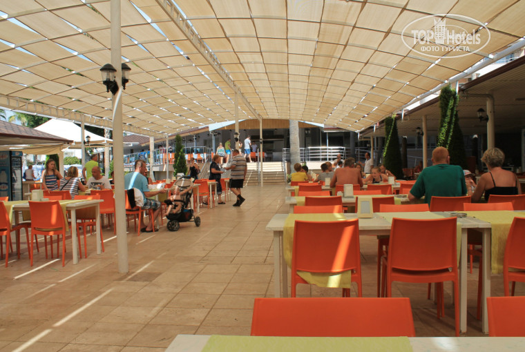 Сама территория нас порадовала своими размерами. Весной к началу сезона терретория была открыта только до детской площадки, блоки Д, Е и Ф были закрыты. А сдесь мы видим Витамин Бар, Кафе около горок блока Ф, ресторан блока Е, бары, горки и класный бассейн около блока Ф. Как гоовриться есть где разгуляться. Одна роща с гранатами и апельсинами чего стоит!