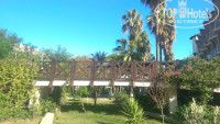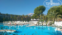 Отель 100% семейный (причем очень много маленьких детей дошкольного возраста), отдыхающие - 98% русские и 2% турки. Территория отеля очень большая, зелёная, красивая. Много различной растительности, цветов; прудики с рыбами, искусственный водопад, всевозможные мостики. Что порадовало - вдоль набережной дорожка (с мягким покрытием) с фонарями, скамейками, качелями, очень приятно было вечером прогуляться. Несколько бассейнов: и детский, и обычный для взрослых, и релакс-бассейн, и бассейн с искусственной волной, горки. За амфитеатром есть небольшие магазинчики. Скажу сразу (если кого-то интересует) - там очень дешевый текстиль (не тратьте время на поездки в торговые центры и в город, в отеле дешевле).