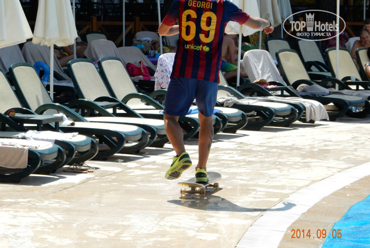 БОЛЬШИМ МИНУСОМ для семейного отеля считаю распределение мест для курильщиков! Кругом дети, люди не переносящие эту жуткую ВОНЬ сигаретного дыма, а место, где курить запрещено как для прокаженных - с самого края волнового бассейна.