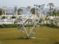 Территория отеля представляет собой "букву Ш": Первый и второй корпус находится близко к соседнему отелю, где шумная вечерняя анимация и ночная дискотека. Потом идет зеленая зона с гигантскими шахматами, итальянским рестораном и релакс бассейном. Далее располагаются 3 с 4 корпусом и 5 с 6 соответственно. Все основные бассейны, рестораны и бары располагаются между 4 и 5 корпусом.