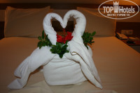 Номер убирался ежедневно, белье меняли также ежедневно. А полотенца даже два раза в день! И лебедей нам наделали целое озеро!