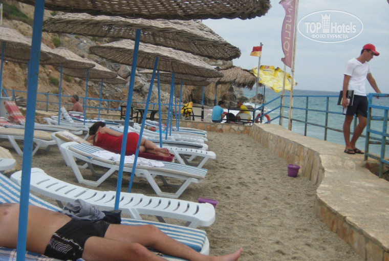 НА самом пляже - вход в море местами нормальный, но сам пляж ооочень маленький, не то что лежаков - места всем не хватает, для отеля категории 4 звезды - недопустимо. Как выразился один из туристов - как будто в Краснодарском крае отдохнул - приходилось вставать чуть ли не в 6 утра, так как к 7 ура не было уже ни одного свободного лежака. Лестница ведущая на пляж - очень опасна и для взрослых, и тем более для детей.