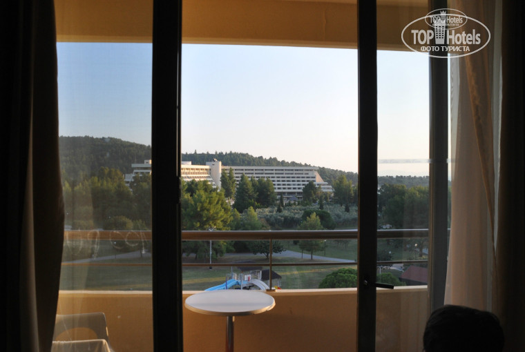 Размещение 3.Забронирован был номер с видом на море, фото вида из номера прилагаю. Если это sea view, то я фантомас. Процедура размещения ужасна (только после 14-00, несмотря на то, что мы приехали в 9, а до нас выехала группа из 300 человек, то есть спокойно можно было приводить номера в порядок и расселять по мене уборки номеров, но нет! Сидите и ждите... с 8 утра до 14 обои можно было поклеить в тех номерах!!!) Понятно, что по международным стандартам имеют право, но выглядит это так, будто специально мурыжат людей после ночного перелета, чтобы в 14-00 номер восприняли как манну небесную и не возникали по поводу ужасного, отвратительного номерного фонда! (старые номера, скрипящее раскладное кресло в качестве кровати для ребенка, черная плесень в ванной, отвратительная звукоизоляция: номера, выходящие на бассейн, вынуждены не спать ночами из-за дискотеки; если не дай Бог кто-то курит на нижних этажах на балконах, мы просто задыхались - кондиционеры не справлялись никак).