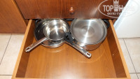 Еще один шкаф, стол, полностью обставленная кухня - мойка, бокалы, тарелки, чашки, плита, духовка, тостер, СВЧ, чайник, холодилка. Кухонная утварь! - сковородки, кастрюли, ложки поварешки. Зачем это в оллинклюзив???? я {удалено модератором} ))))