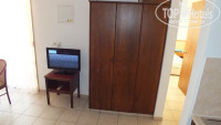 В спальне 2 кровати. Стенной шкаф с вешалками и сэйфом (12,5 евро за 7 дней и 10 евро депозит - возвращают). Стол с ящиками. Тюлечка, шторы тяжелые - позволяют сделать ночь даже днем. Деткам удобно спать с ними днем. Стены очень толстые и никакие сторонние звуки к нам не проникали (музыка с бара, и звуки с дороги)