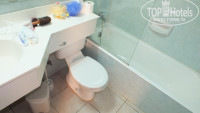 Ванна. ну... на 4 -... ремонт бы не помешал - рыжие швы на плитке, но в общем чисто и убрано. туалет продезинфицирован. Бумагу и мыло дают. Полотенец на троих было 8 штук.