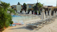 Все очень зелено и красиво. Кусты постоянно стригут, дорожки моют. Бассейн оооооочень чистый. даже в ветер - к утру вся дрянь уже убрана из воды. Лежаки уже староваты, зонты тоже - пофигу. Полно детских игрушек оставленных другими туристами. Вода не греется - прохладная. Есть теннисный корт, столы настольного тенниса. Есть маленький детский городок.