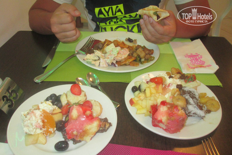 Отдыхали 17-25 сентября. Приехали в отель в 14.00, нас сразу же зарегистрировали и дали карточку от номера. Так как мы молодожены, тур оператор обещал нам "комплимент" от отеля, это было указано в нашем ваучере, но нас попросили предварительно напомнить об этом на ресепшене при заселении, что мы собственно и сделали. Опережая события скажу, что "комплимента" мы не дождались, в то время как нашего соседа поздравили с ДР бутылкой вина, это конечно же было не очень приятно, но отдых не испортило. Номер был 122 - чисто, тихо, уютно. Брали пульт от кондея за депозит 20 евро.Живности в номере не было, убирались качественно. Персонал кстати ну очень приятный, всегда улыбаются, рады помочь, все говорят на русском. Кормили отлично. Питания завтрак-ужин вполне хватало, обед не нужен совсем. Завтраки однообразные, немного поднадоели, но голодными мы не оставались. Ужин всегда разнообразный, каждый день определенный вид кухни, повара молодцы, готовили отлично, очень вкусно. Вечером была развлекательная программа, это тоже плюс. До моря, как указано выше, недалеко,море теплое, красивое. Ездили на Нисси, там вода просто кристально чистая. Экскурсии лучше взять в городе, там тоже самое и дешевле. Мы купили от тур оператора, нашли на 30 евро дешевле, хотели сдать билеты, но сроки истекли((( А вообще развлечений море: аквапарк, лунапарк ну и конечно же множество баров, клубов и т.д. Влюбились в Айя-Напу, вернемся еще))