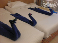 Расселение:все отлично.Встретили, рассадили на диванчики, собрали паспорта и через 20 минут выдали ключи от номера.Первоначально дали 1 этаж в 6 корпусе.Не понравился номер.Бесплатно поменяли на второй этаж, того же 6 го корпуса.Рядом был всеми описываемый дальний 7 корпус.Он совершенно не страшен.И не так далеко от моря.Прогулка по пальмовой аллее лишь доставляла удовольствие.Номер дали чистый, все работало, уборка ежедневная, отличная.оставляли доллар в благодарность за сюрпризы для ребенка из полотенец и покрывал.