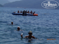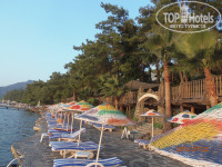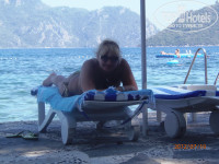 очень меня порадовал пляж..лежаки..зонты все бесплатно, что не скажешь про городские пляжи Мармариса , где это большая редкость..:)..платформа с лежаками по всему периметру отеля..удобно нырять с нее и потом по лесенки загорать..дети были в восторге..