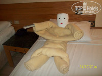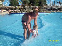 Всем привет! Вот отдохнули немного от «отдыха» и появилось время написать отзыв. Отдыхали семьей (я, муж, сын 13 лет и дочь 1.2 года) в конце октября 2014 г. С маленьким ребенком отдых – это своего рода испытание, для нас это было впервые и я осталась приятно удивлена. Начну по порядку: до Москвы ехали 6 часов в машине, дорога прошла отлично! Затем вылет из Домодедово в 9.50, все прошло без задержек, а при регистрации было отдельное окно для пассажиров с детьми, что очень удобно! Коляску мы не сдавали в багаж, а отдали грузчику возле трапа (и там же забрали по прилету в Хургаду). Так что дочь путешествовала с комфортом! Летели мы с туроператором Библио Глобус на большом 2-хэтажном самолете, оборудованном сенсорными телевизорами, и всю дорогу либо играли, либо смотрели фильмы, либо слушали аудиокнигу. Дочь после еды отошла ко сну и до приземления спала. О приземлении – это ужас, нам не давали посадку (почему – не объяснили) и мы 7 кругов (1.5 часа) кружили над аэропортом, на 5 круге уже подташнивать начало. В аэропорту – кошмар, помещение не большое, все толпятся, раздали для заполнения какие-то анкеты, их смысл вообще не понятен, для чего указывать информацию, которая и так есть у них в базе? Наши фамилии, даты рождения и номер паспорта??? Потом длиннющая очередь в кассу и оплата виз по 25 долларов с человека!!!!!!!!!! Меня вообще не предупредили в агенстве об этом и я была в полном шоке, что пришлось отвалить 100 баксов за 4-х. Затем очередь в паспортный контроль, и только потом можно двигаться в сторону трансферов. Довезли нас быстро, минут 15 от аэропорта, очень удобно, рассадили всех в холле на кресла, гиды забрали документы и сами понесли оформлять, через 5-10 минут вернули паспорта, выдали ключи и одели браслеты (на мелкую не одевали). Я в отзывах читала, что напитки предлагают, нам ни чего не давали, хотя через пару дней проходя мимо, я видела, как вновь прибывшей группе принесли соки, пока они ждали ключи. Я сразу же подошла на ресепшен и попросила кровать для дочки, мы ушли гулять, а когда вернулись через пару часов, кроватка уже стояла! Спасибо большое! Комната отличная, 2-х спальная кровать, 1-спальная, стол с зеркалом, 2 тумбы и кушетка, да и пуфик еще, балкон (на который муж сразу натянул, привезенную с собой веревку, для сушки вещей), где был столик в 2-мя стульями, ванная комната – отличная, душевая кабина большая, я там с дочкой вдвоем мылась, и еще место было, все чистенько, много полотенец. Вещи вы покидали и помчались осматривать территорию. Действительно пройти до отеля Бич – это 3-4 минуты, вообще не напрягало. Территория чистая, все убирают, все приветливы, особо ни кто не приставал, так продавцы выкрикивали, зазывали, но мы просто мимо проходили и все. Пляж большой, чистый, море – загляденье, лежаков всегда хватало, даже если позже приходишь. В баре любые напитки, от горячего какао до ледяных соков, ну и алкоголь конечно! Мальчики бегают, пустые стаканы собирают, молодцы! В рестораны запись на пляже в тайском ресторане ежедневно на вечер, я приходила в 9.55 и 2 раза была первой, 1 раз второй, то есть ни каких проблем! Отмечу, что к немцам действительно относятся благосклоннее, чем к русским, прям за руку берет, и вперед меня ведет, но настроение из-за них я себе не портила, ни чего не говорила, Бог с ними, от меня не убудет! Еда – завтраки оставляют желать лучшего, просто мы «мяс