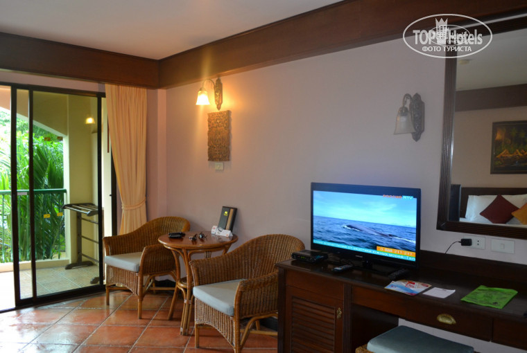 Номер на втором этаже, 211, обычный стандарт. Расположен очень удачно, вид на бассейн, чистенький, большой и прохладненький. Очень обрадовало наличие чайного набора, вечером горячий чаек с тайскими блинчиками-ооооооооооооо! Ванна укомплектована стандартно, сейф в наличии, фен и сушилка для белья есть. Подкачали полотенца, уж очень они ветхие.Ну это уж так, к чему-то надо придраться. Да, в номере два бальших зонта, они прямо спасением от солнца на пляже стали. То, что на пляже лежаков и зонтов нет, уже наверное, все в курсе. Бассейн в отеле понравился, для такой пловчихи как я глубина в 1,62 м в самый раз, джакузи исправно, брали шейки в баре в бассейне,они гораздо дороже, чем на улице.