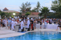 Также мы попали на Гала -вечер. Очень впечатляюще! В этот вечер ужин отменили, накрыли большие круглые столы с белыми скатертями в саду возле бассейна, установили большую сцену. Шведские столы расположили возле бассена, просто огромное количество еды, но самое впечатляющее, когда все повара выстроились в две линейки с разных сторон и когда мы проходили, они нам аплодировали и желали приятного