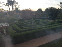 большая всего много , уберают хорошо , очень много зелени , деревья подстрижены аккуратно , есть с глазами в виде голов , есть арки , очень понравился детям большой лабиринт из кустарника высотой 2 метра . 3 теннисных корта ( я играл в теннис каждый день ракетки специально привез с собой , в отеле тоже есть на ресепшине без платно , все свободно , рекомендации отелю корты пустые сделайте один с дополнительной разметкой под бадминтон ! людей кто играет в бадминтон больше . )