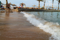 3)море.Есть лагуна там достаточно мелко в хороший заход лежаки свободные всегда есть . Есть также выход в само море там тоже не глубако( отлично подойдет для детей) чуть ли не до середины доходила все по пояс потом уже просто плавала туда обратно( я глубины боюсь поэтому очень далеко не плавала) , но к сожалению мы попали тогда, когда уже начались ветра поэтому море было прохладненькое в основном плавали в бассейне